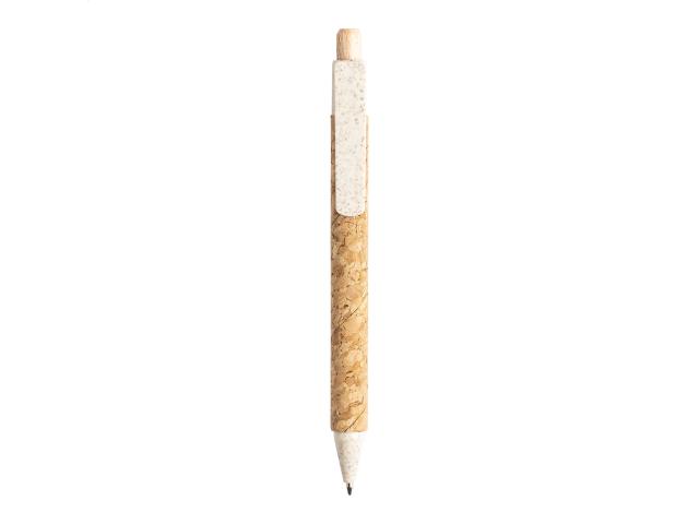 Ecological wheat straw plastic ballpoint pen with natural cork covered barrel. With blue refill.