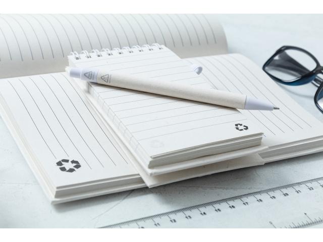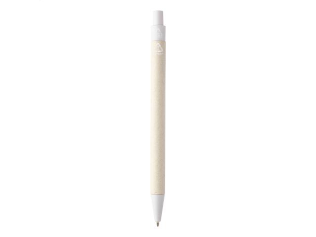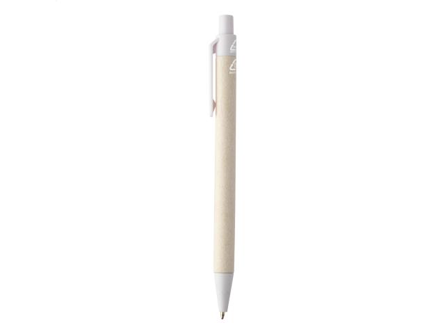 Recycled milk carton paper ballpoint pen with recycled ABS plastic parts. With blue refill.