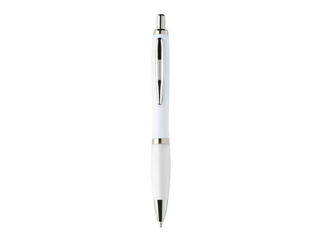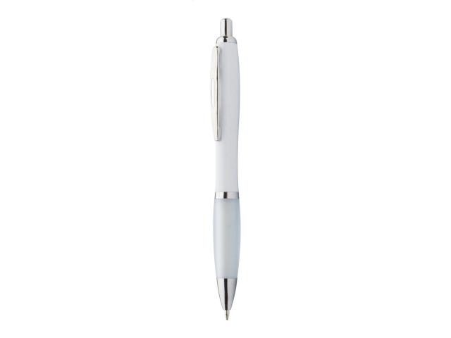 Recycled ABS plastic ballpoint pen with white barrel, coloured grip and chrome parts. With blue refill.