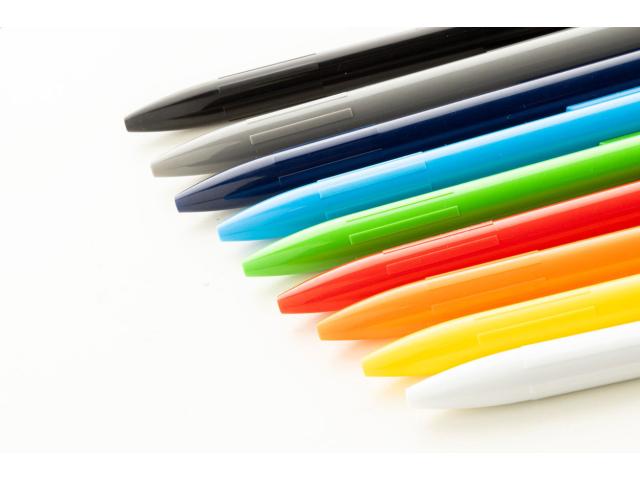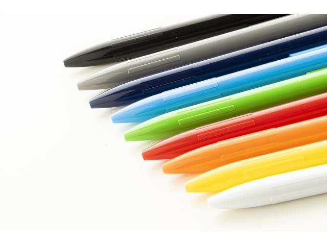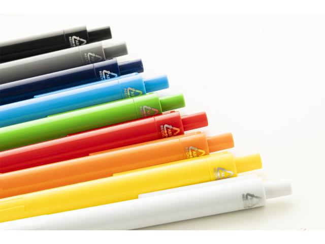 Recycled ABS plastic ballpoint pen with blue refill.