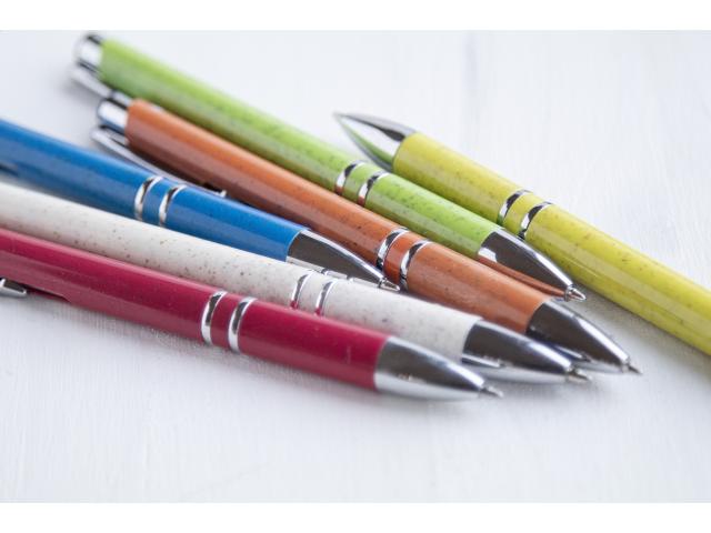 Ecological wheat straw plastic ballpoint pen with metal parts. With blue refill.
