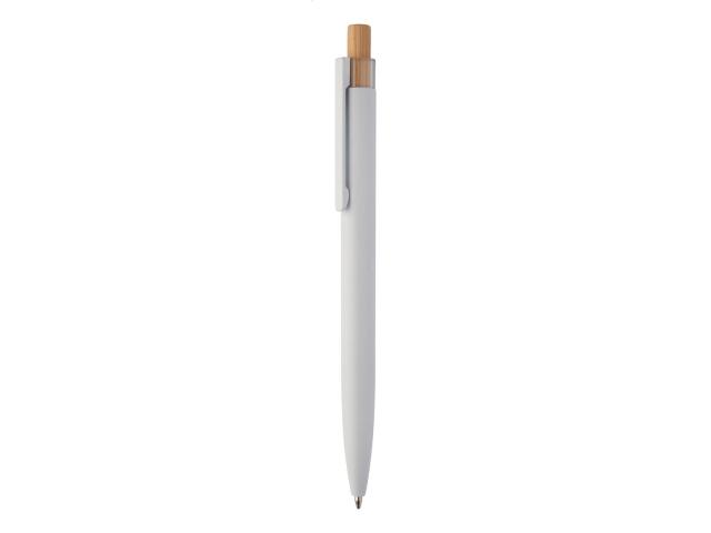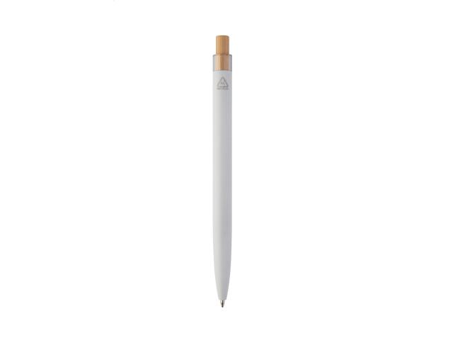 Recycled aluminium ballpoint pen with bamboo button. With blue refill.