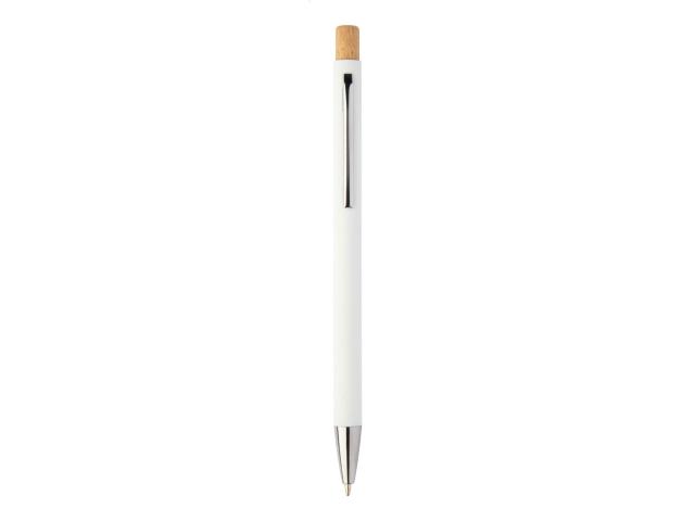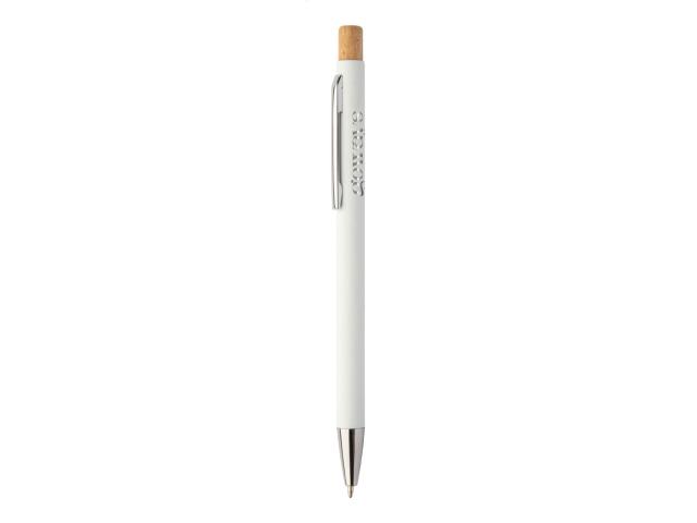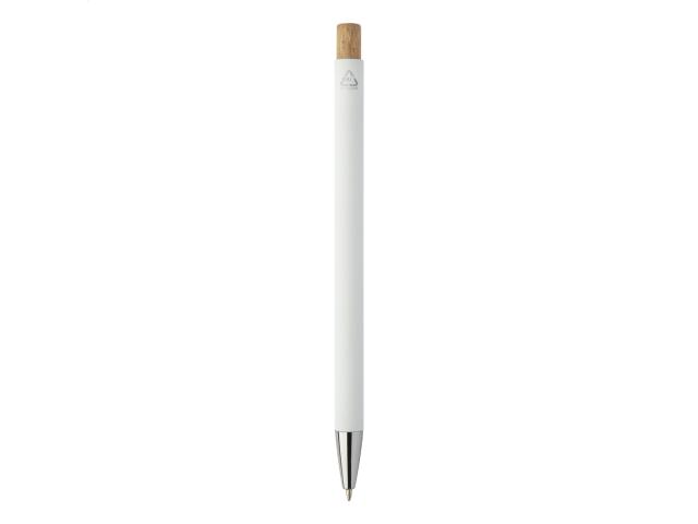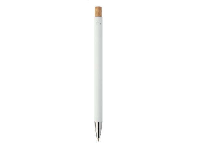 Recycled aluminium ballpoint pen with rubberized finish and bamboo button and chrome details. With special coating for mirror laser engraving. With blue refill.