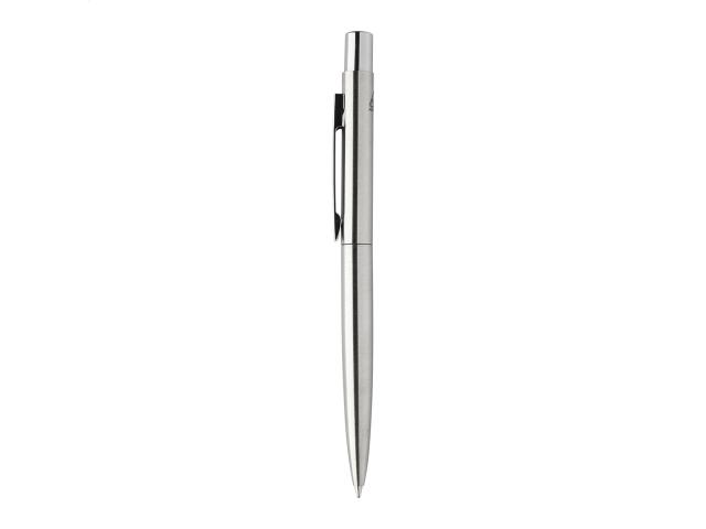 Recycled stainless steel ballpoint pen with chrome details. With blue refill.