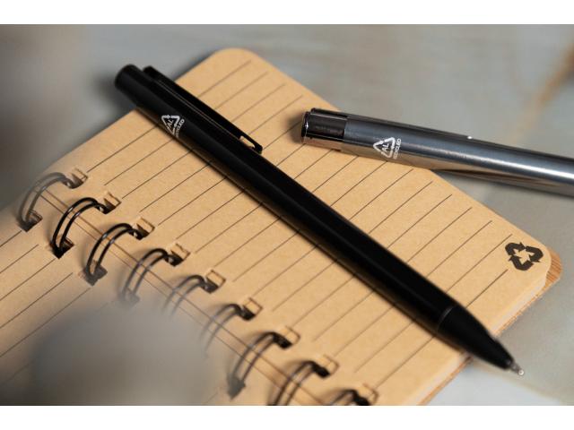 Recycled aluminium ballpoint pen with shiny metallic finish. With blue refill.