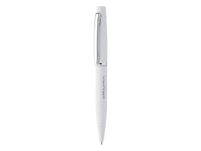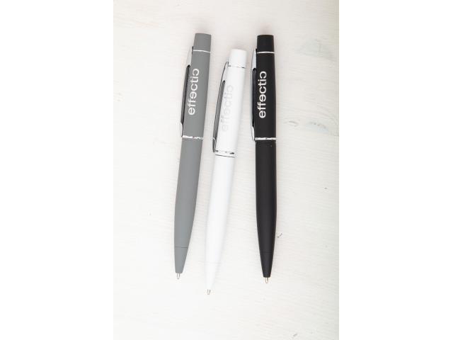 Metal twist ballpoint pen with rubberized finish and blue refill. With special coating for mirror laser engraving.