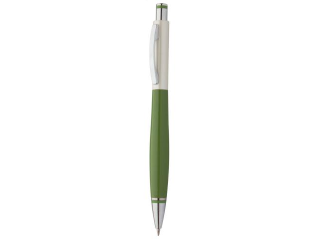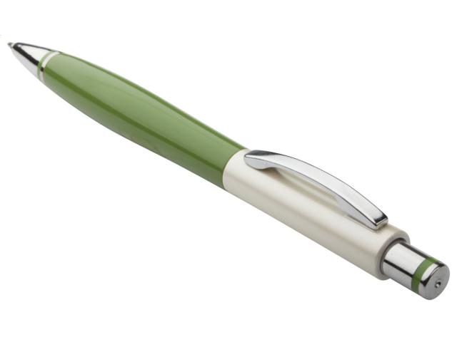 Plastic ballpoint pen with metal clip, chrome tip and pearl white-colour finish. With blue refill.