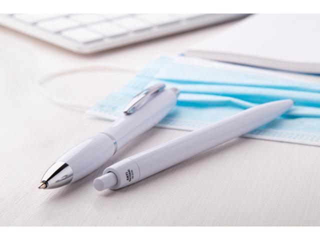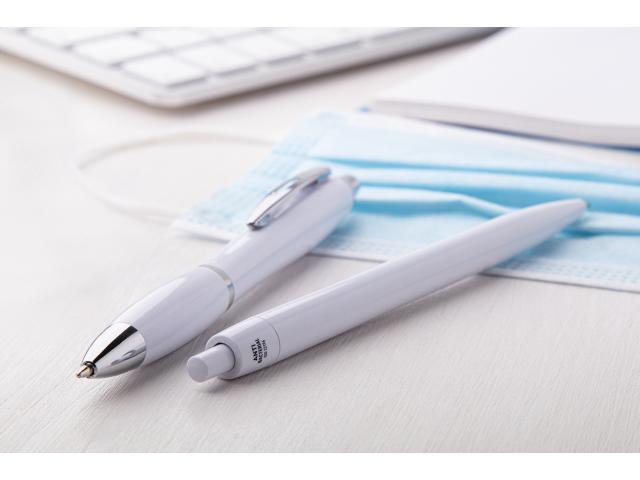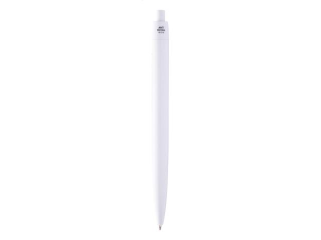 Plastic ballpoint pen with antibacterial barrel. Contains nano silver additive preventing bacterial growth on the body of the pen. With push mechanism and blue refill. ISO 22196:2011 compliant.