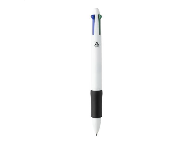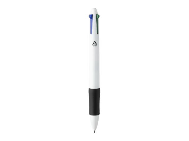 Recycled ABS multicolour ballpoint pen with rubber grip. With black, blue, red and green refills.