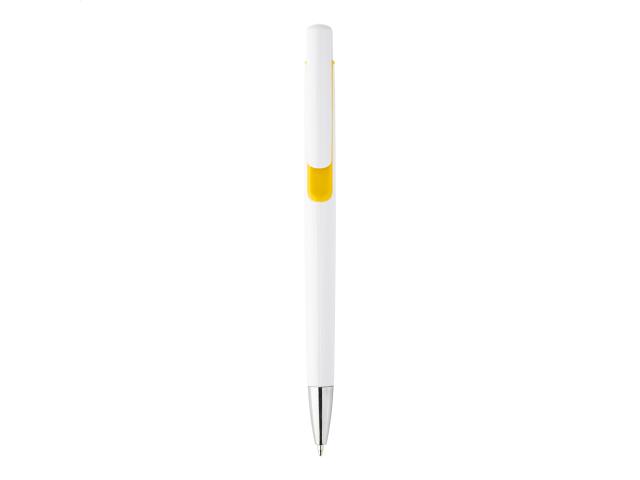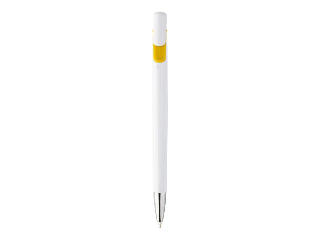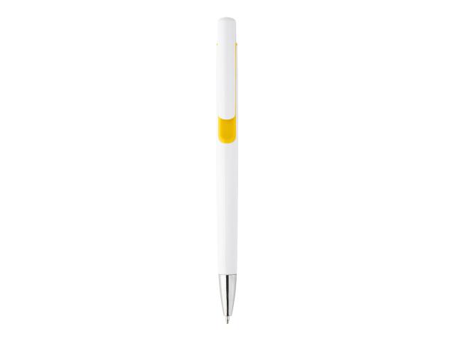 Plastic ballpoint pen with coloured decoration and chrome tip. With blue refill.