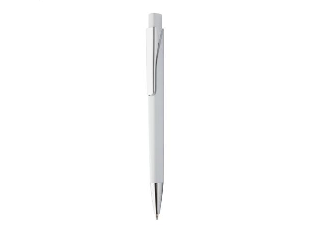 Plastic ballpoint pen with silver clip and chrome tip. With blue refill.