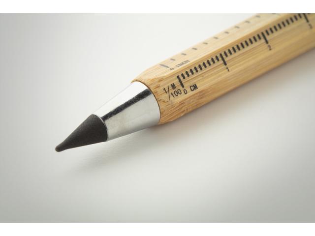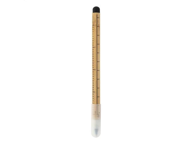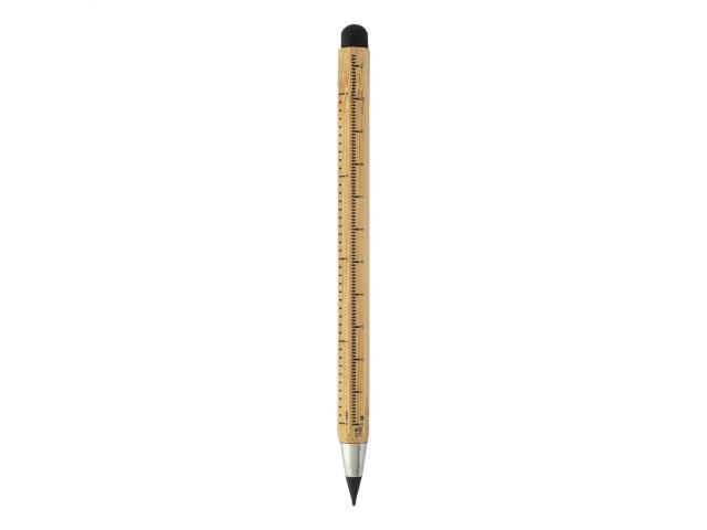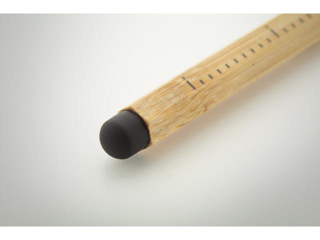 Bamboo long-lasting inkless pen with touch stylus and metal alloy tip, which oxidizes the paper. With hexagonal barrel including 11 cm and 4 inch rulers. This pen writes similarly to a pencil, and it is also erasable.