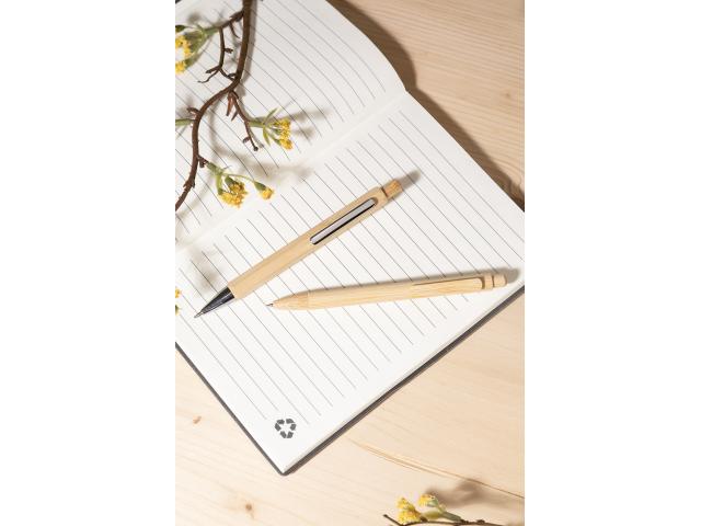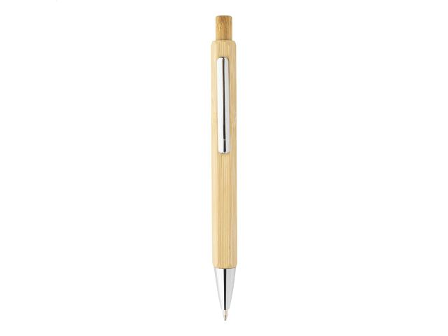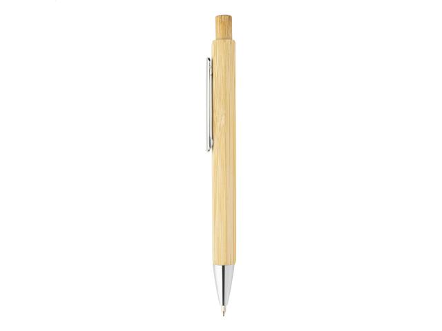 Hexagonal bamboo ballpoint pen with chrome parts. With blue refill.