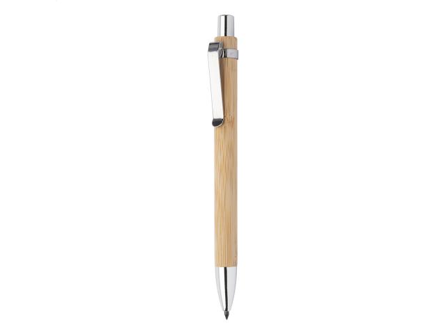 Bamboo inkless pen with metal parts. With metal alloy tip, which oxidizes the paper. This pen writes similarly to a pencil, and it is also erasable.