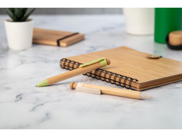 Bamboo ballpoint pen with ecological wheat straw plastic parts. With blue refill.
