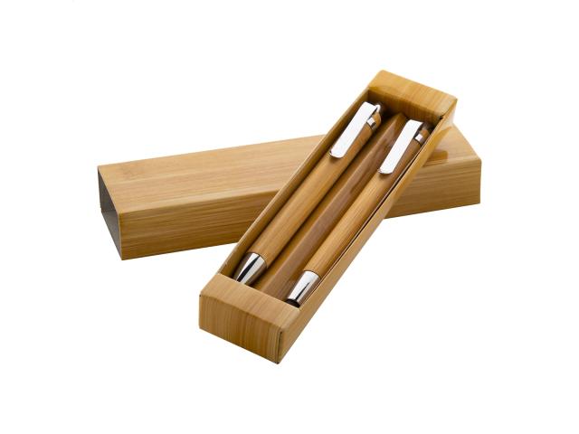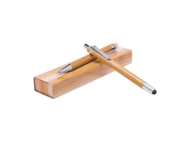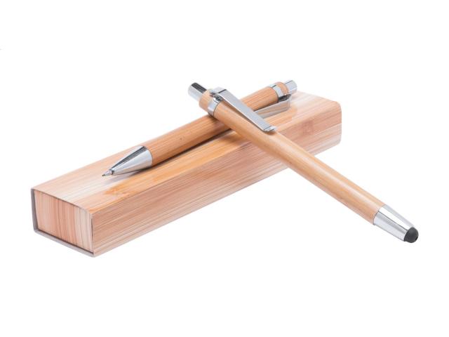 Bamboo pen set with touch ballpoint pen and mechanical pencil, in gift box. With blue refill and 0,7 mm leads.