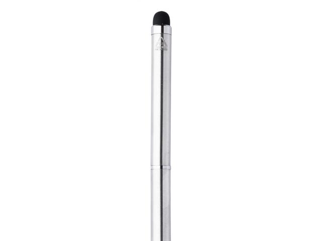 Recycled stainless steel twist ballpoint and touch screen pen with chrome parts. With blue refill.