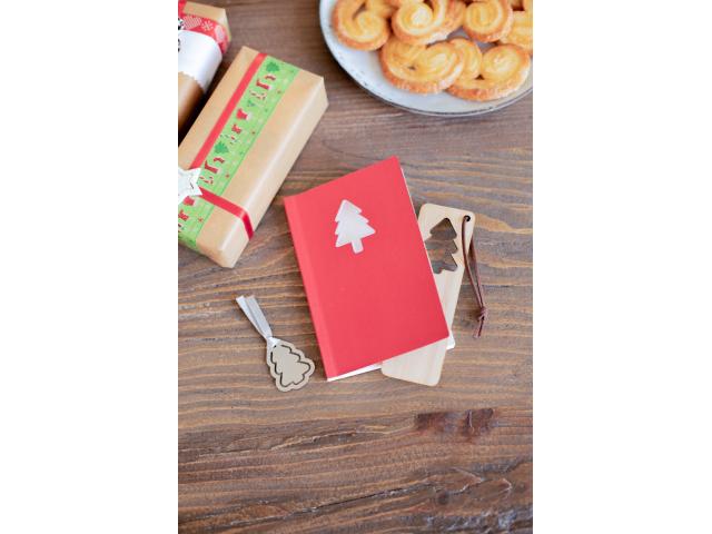 Bamboo plywood bookmark with die-cut Christmas motive and PU leather cord.